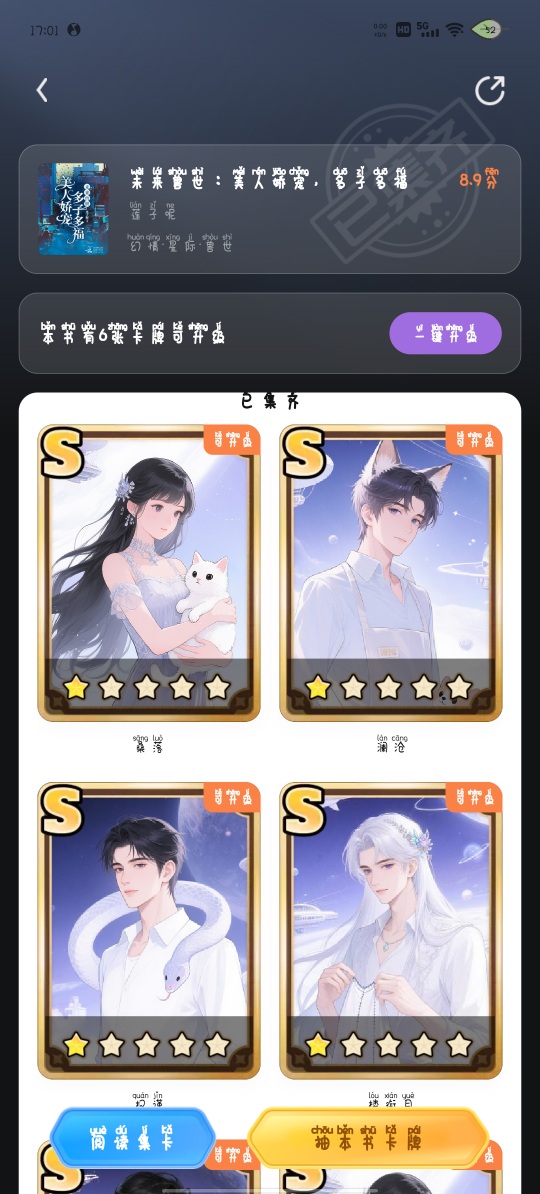 卡牌集齐了,读者们加油加油