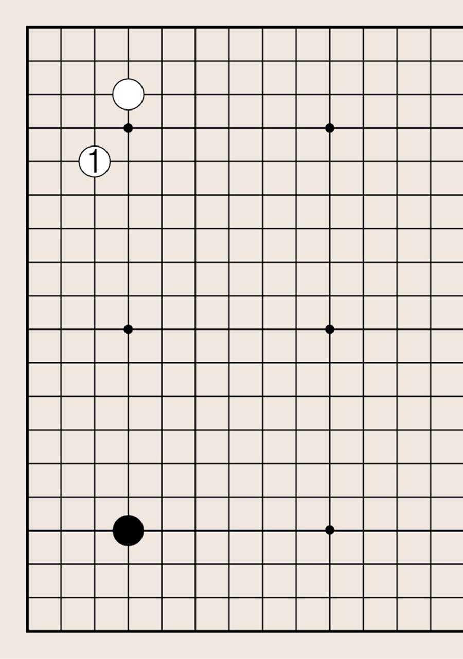 图2中黑1以角为基础,向外扩张势力。以角为后盾向边上扩张外势,极有可能形成很大的实空,所以黑1是相当大的大场。相反,如果轮到白棋下,白棋也会在1位扩张白势。以角为基础向外扩张时,一般都在边上星位或比星位低一格的位置。