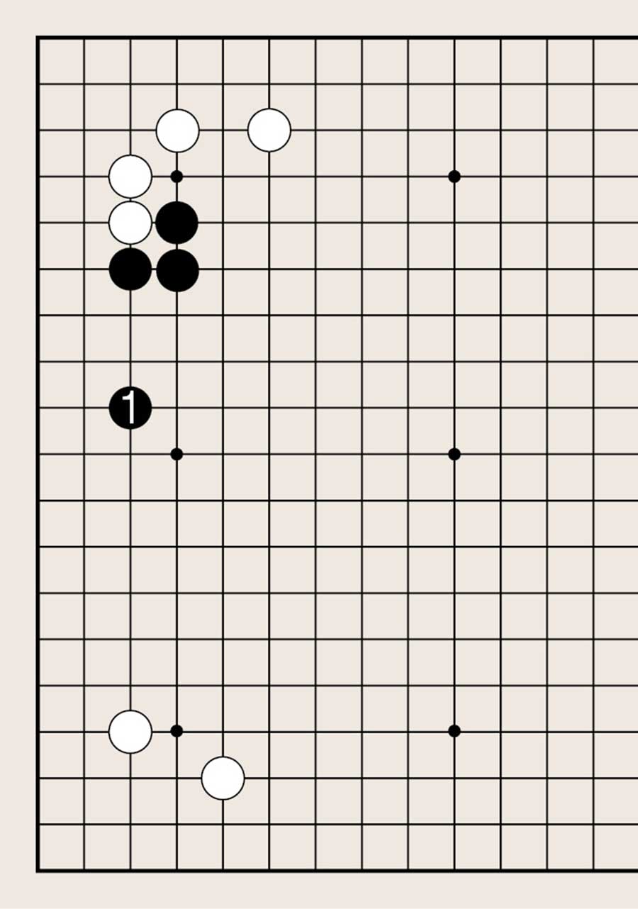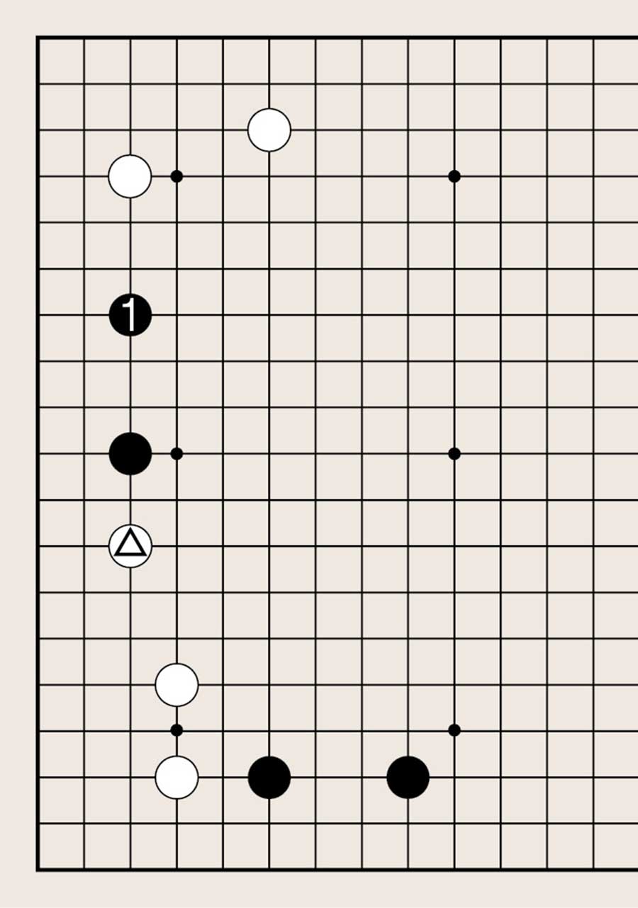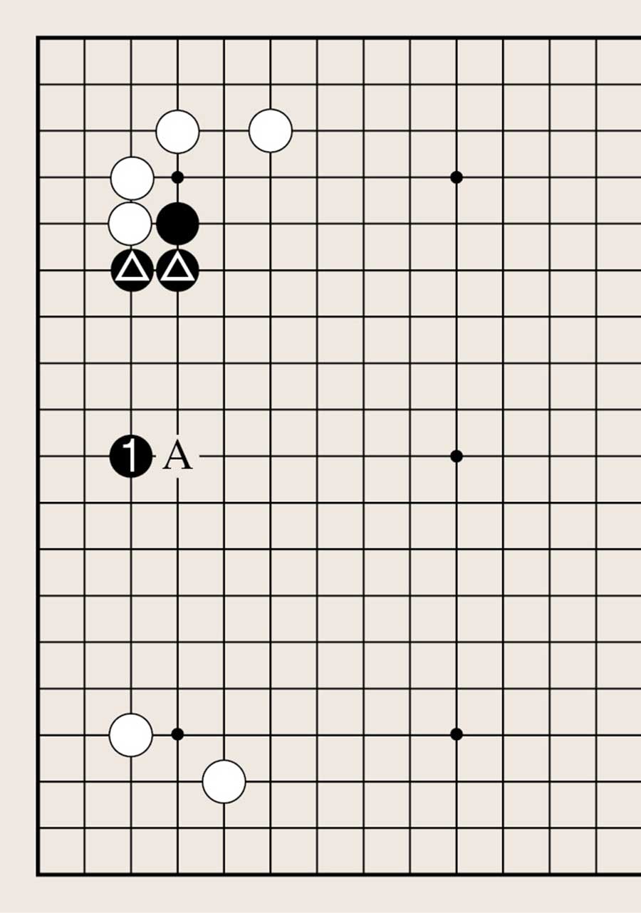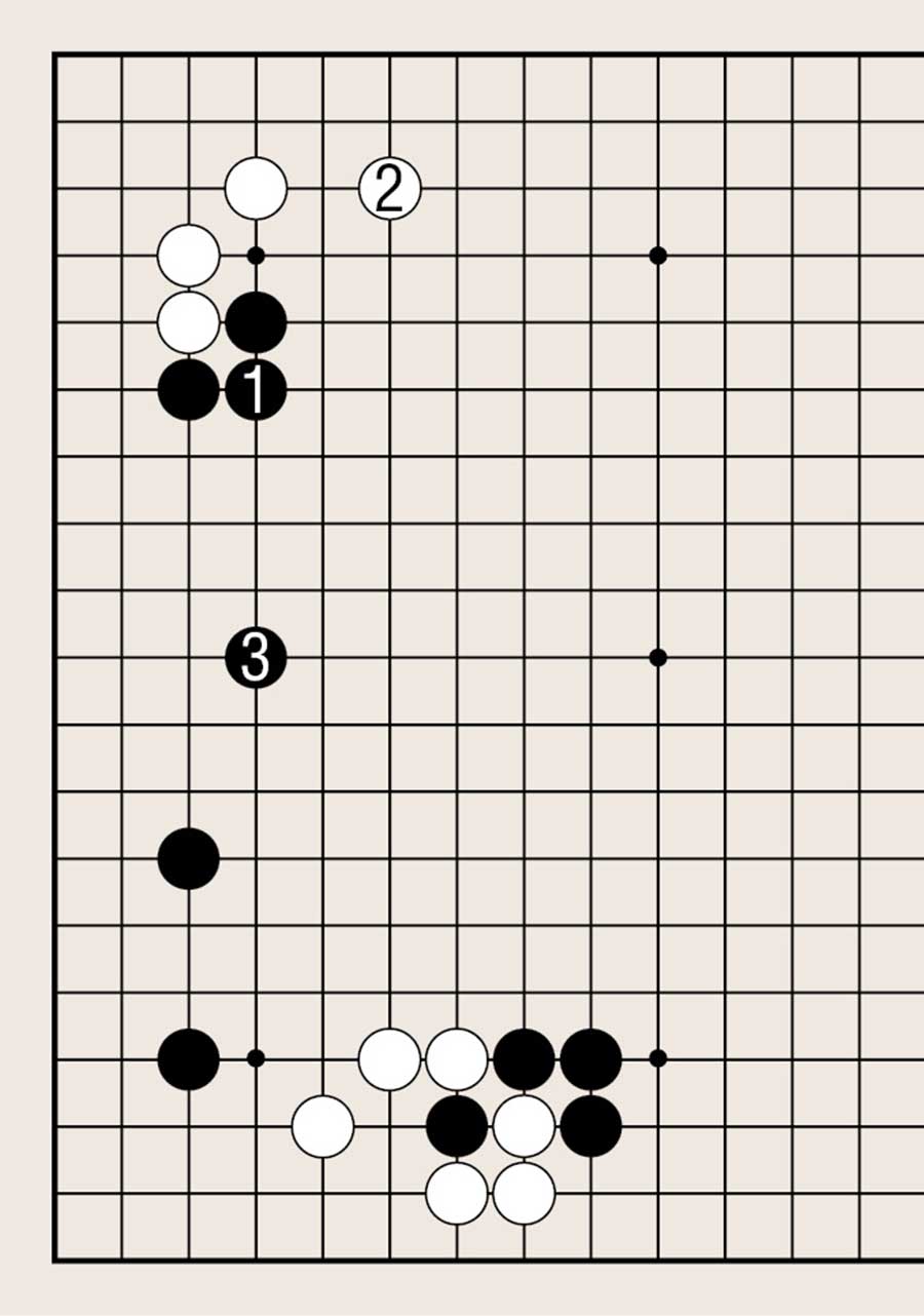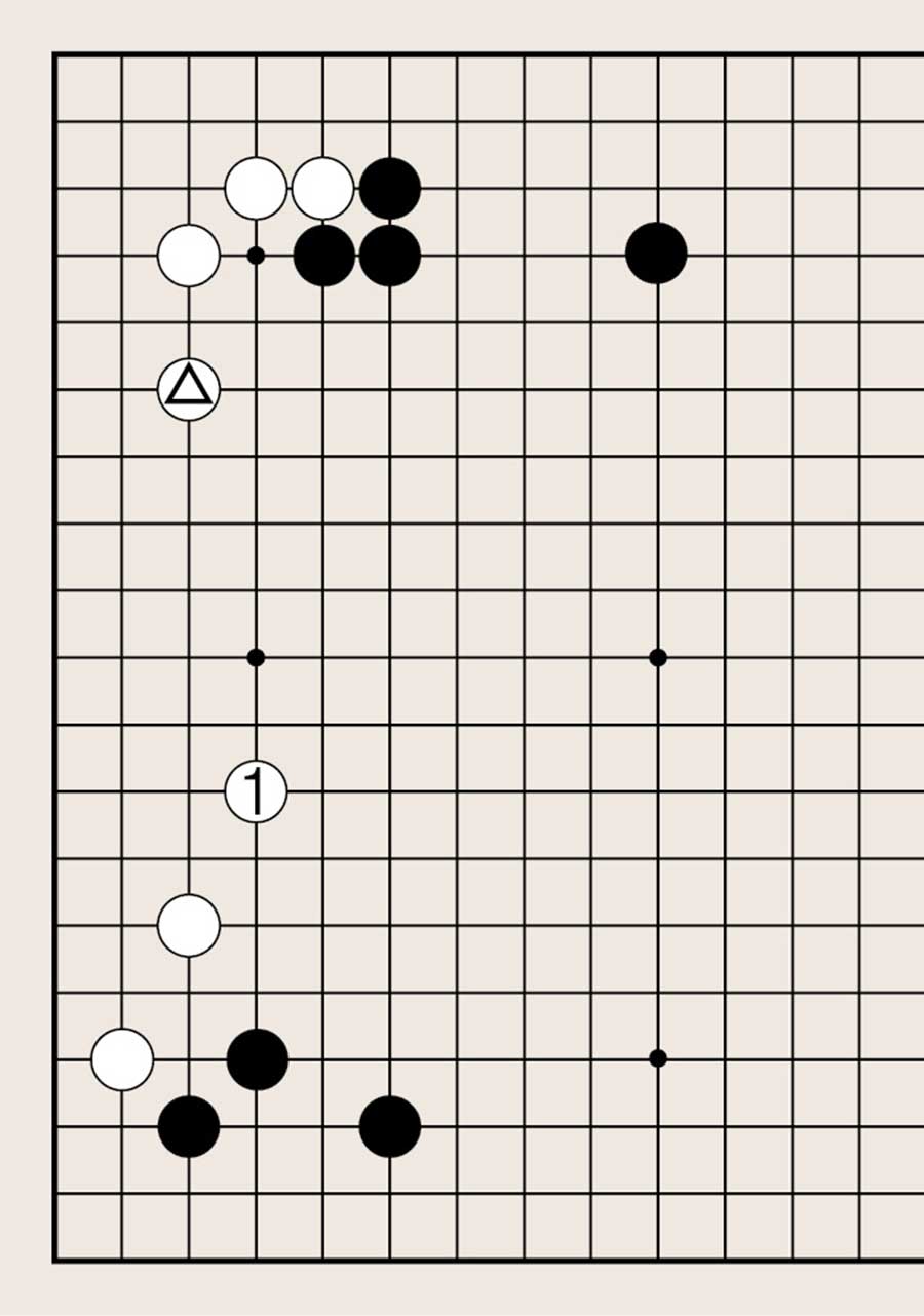 处于低位,像白1下在四线上,提高另一侧白棋的位置是基本要领。由此可知不可单纯地拆二,综合考虑周边棋子的布置很重要。