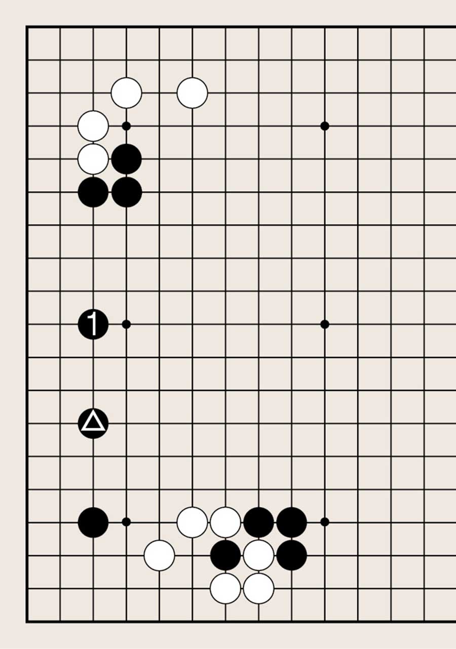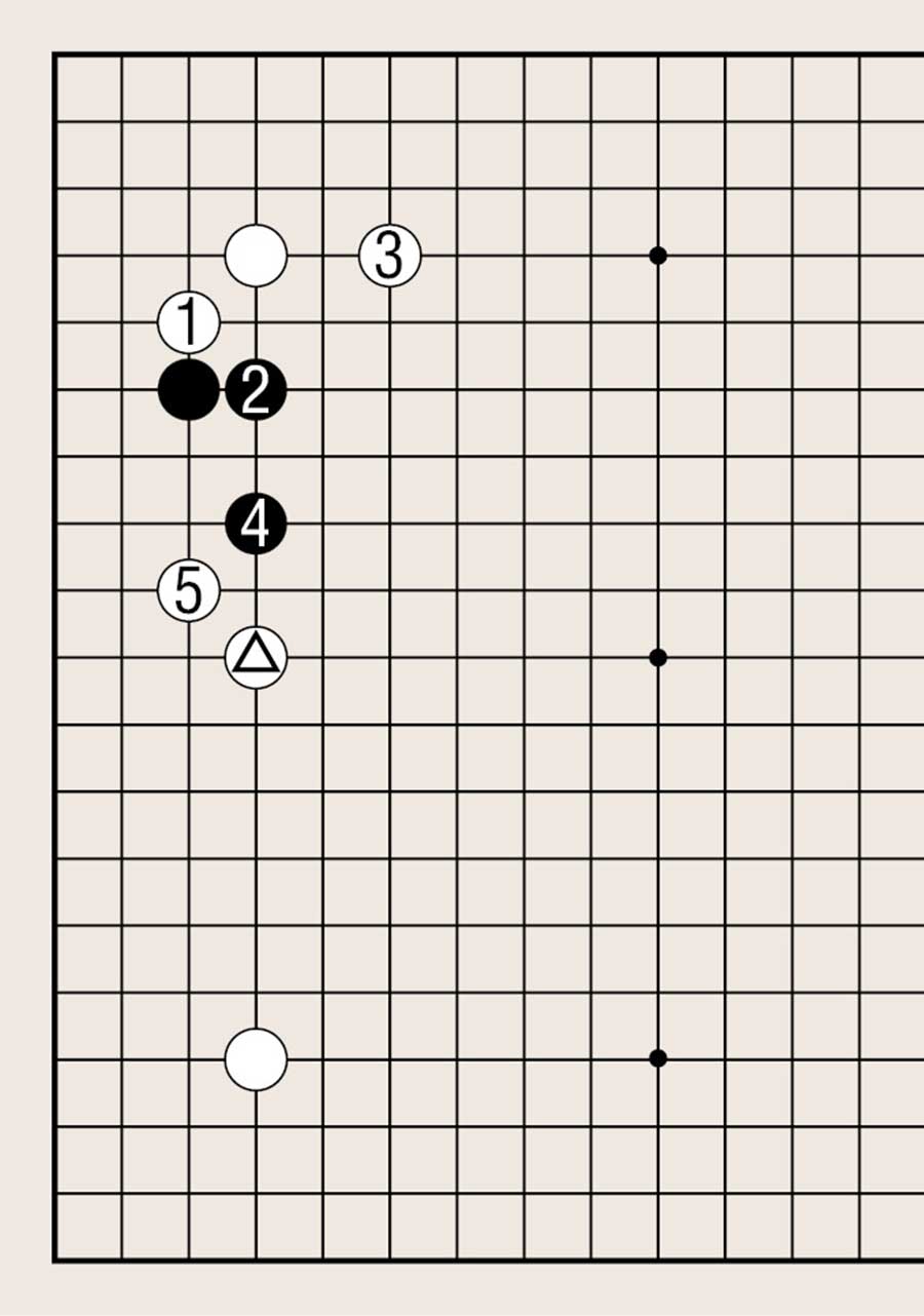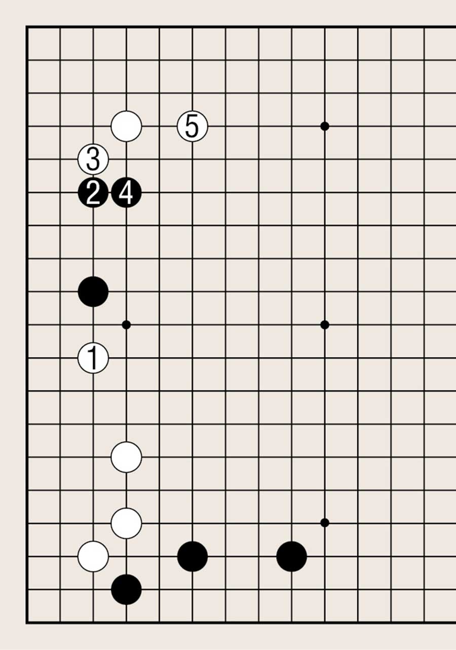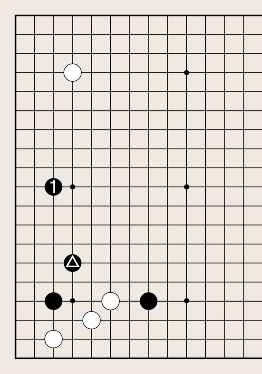 处于低位,像白1下在四线上,提高另一侧白棋的位置是基本要领。由此可知不可单纯地拆二,综合考虑周边棋子的布置很重要。
