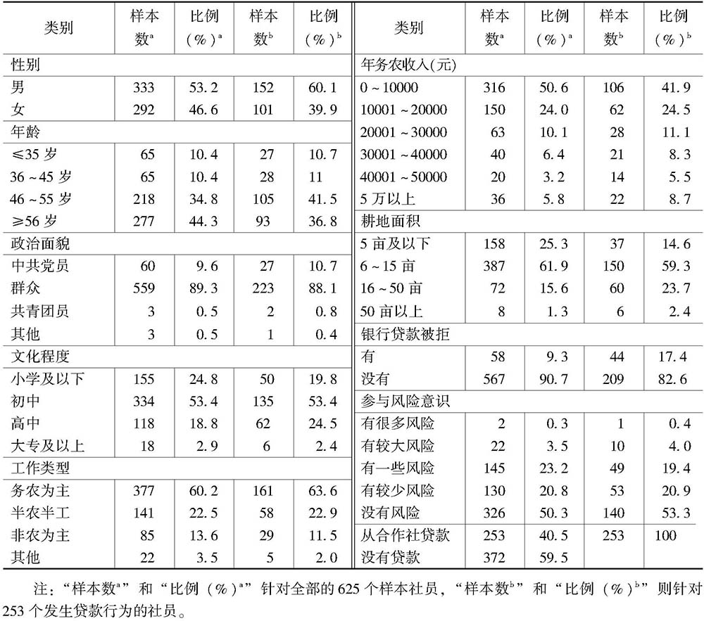 表1 样本社员的基本特征