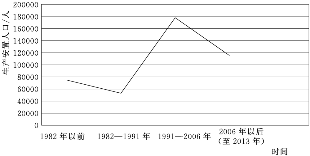 综上所述,四川省水利水电开发项目自20世纪80年代至今,不断蓬勃发展,尤其是2006年之后,项目建设数量有较大上涨,据不完全统计,仅2006—2013年期间已建、在建的水利水电项目就有27个,占省内已建在建大型水利水电项目的59%左右(图2.6),建设征地范围、涉及的移民安置人口规模也逐步增长。具体变化趋势见图2.7~图2.9。