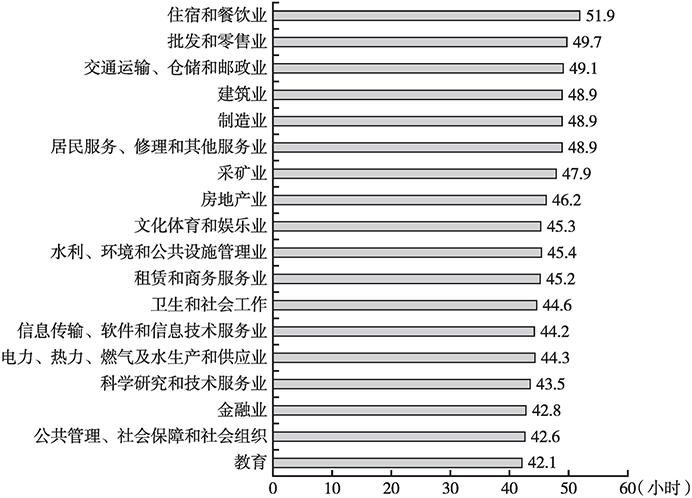 图12 2019年各行业城镇就业人员调查周平均工作时间