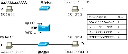 同中继器一样,网桥也是连接两个网段的设备。但和中继器不同之处在于,网桥侦听每个网段上的信号,当它从一个网段接收到一个帧时,网桥会检查并确认该数据帧是否已经完整地到达,然后,如果需要的话就把该数据帧传送到其他网段。这样,两个 LAN 网段通过网桥连接后,就像一个 LAN 一样,网中任何一台计算机可发送数据帧到任何其他的计算机。因为每个网段都支持标准的网络连接并使用标准的帧格式,计算机并不知道它们是连接在同一LAN网段中还是连接在一个桥接网中。