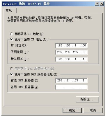 图2-5-1“Internet协议(TCP/IP)属性”配置窗口