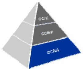 在前面这些认证考试中,目前国内外需求量最大、参加人数也最多的,是路由和交换网络支持认证,即 Cisco售后工程师认证体系。目前在国内的市场也日渐扩大,总体架构呈金字塔形,如图1-1所示,从塔底到塔尖分别为:CCNA、CCNP、CCIE。