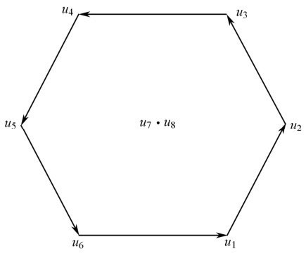 对于每一个有效的工作状态,都可以用一个合成的空间矢量表示,其幅值相同,相位不同。如以u1﹑u2﹑u3﹑u4﹑u5﹑u6依次表示100﹑110﹑010﹑011﹑001﹑101这6个有效工作状态;111和000这两个工作状态分别以u7﹑u8表示。u1﹑u2﹑u3﹑u4﹑u5﹑u6这6 个矢量对应着逆变器的6种工作状态,由此获得了近似于圆形的6边形的旋转磁场,如图1-12 所示。控制旋转磁场的角频率可控制电动机的旋转速度,因此控制逆变器也就实现了电压空间矢量控制。