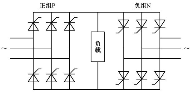 交-交变频器主电路如图1-27所示,交流输出的正半周电流由正组整流器提供,负半周电流由负组整流器提供。