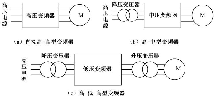高(中)压变频调速系统不像低压变频器那样有统一的主电路结构形式,但常见的主电路拓扑形式有直接高-高型﹑高-中型和高-低-高型等3种。
