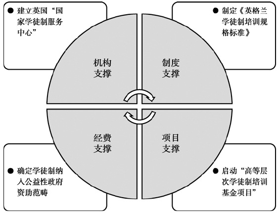在制度的发展动力上,存在着以市场为主导的职业教育发展模式和以国家为主导的职业教育发展模式,两种发展模式各有其优劣。英国学者安迪·格林肯定了职业技术教育在一国的世界经济竞争中所具有的重要地位,在对职业教育和培训体系进行研究时,他通过对集权制和分权制下的教育成绩进行比较后,得出了英、美分权制体制的教育成绩要逊于集权制体制下的教育成绩的结论,并尖锐指出,反对国家干预教育是英国教育落后的主要原因。