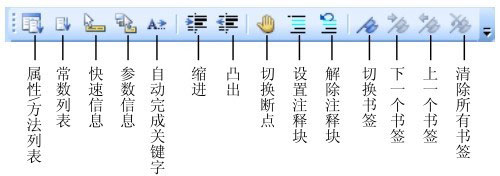 在修改和调试代码时,边界标识条将显示一些有帮助的指示图标。在代码窗口的左下方有两个按钮,其功能如下。