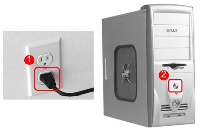 ❶ 将主机箱上的电源线插头,插入电源插座中,并确保供电正常。
