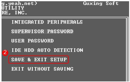 ❷ 使用键盘上的【光标定位】键,选中【SAVE& EXIT SETUP】项,使其成为红色显示状态。