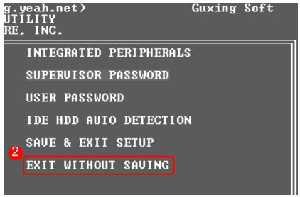 ❷ 使用键盘上的【光标定位】键,选中【EXIT WITHOUT SAVING】项。