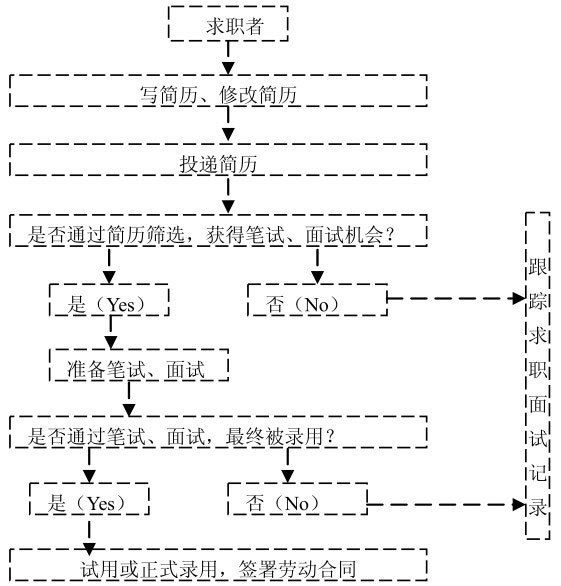 简历是对个人学历、经历、特长及其他相关情况所做的简明扼要的书面介绍。简历是招聘单位和应聘者当中的桥梁,是企业决定录用与否的重要评价工具。图4.1是求职者通过简历求职过程的图解。