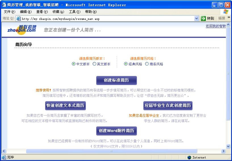 图5.2 智联招聘网的“简历向导”页面