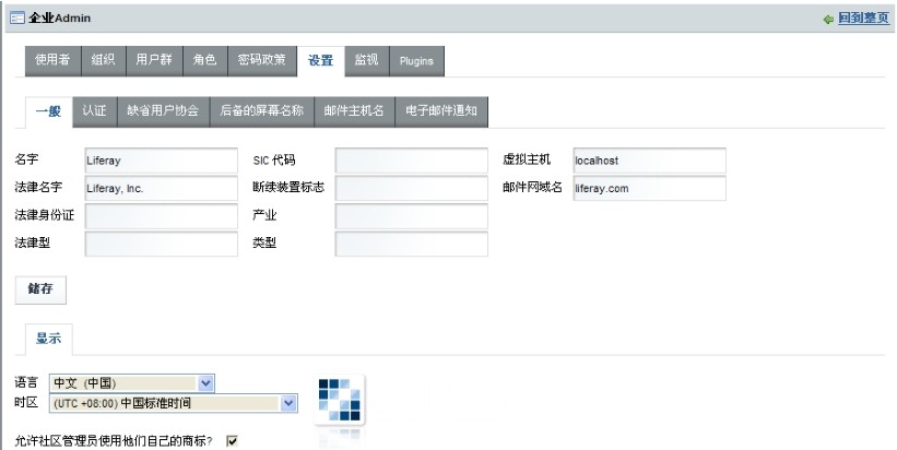 除了企业admin,还有另外两个Portlet——“管理者”和“公共”。管理者Portlet用来管理Liferay Portal系统,监测系统运行情况,清理系统缓冲区及关闭系统等。而“公共”应该翻译为“社区”,是用来创建和管理不同社区的。