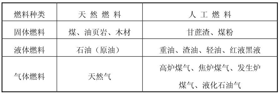 所谓燃料,是燃烧过程中能放出热能的物质。而锅炉用燃料是有选择的,凡是燃烧过程中能放出大量热量,并且此热能可被有效利用的物质,称为锅炉用燃料。燃料按其形态不同可以分为固体。液体和气体三种。锅炉用燃料见表2-4所示。