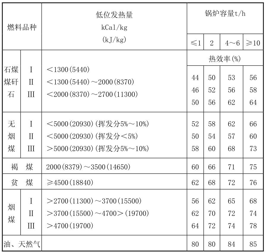 工业锅炉的热效率一般不应低于表2-13的规定。