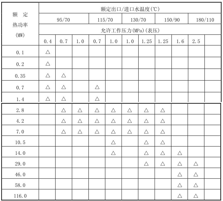 (3)气相有机热载体锅炉,0.1MW<Q≤0.7MW;液相有机热载体锅炉。0.1MW<Q≤4.2MW。