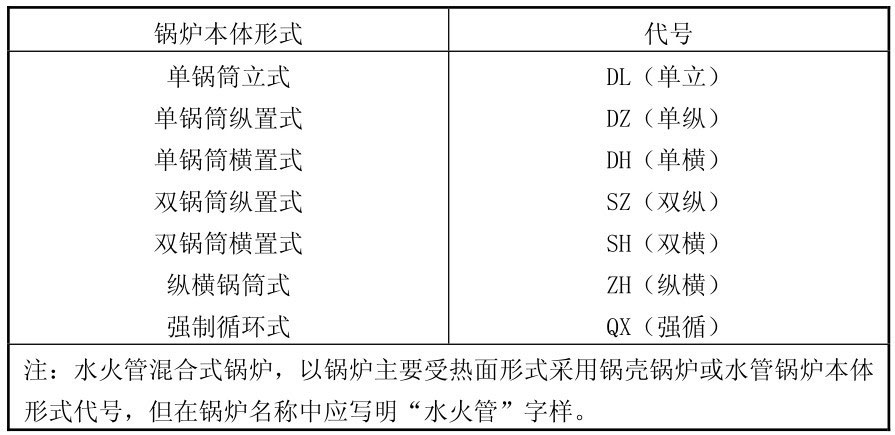 表2-19 水管锅炉本体形式代号