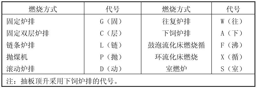 表2-20 燃烧设备形式或燃烧方式代号