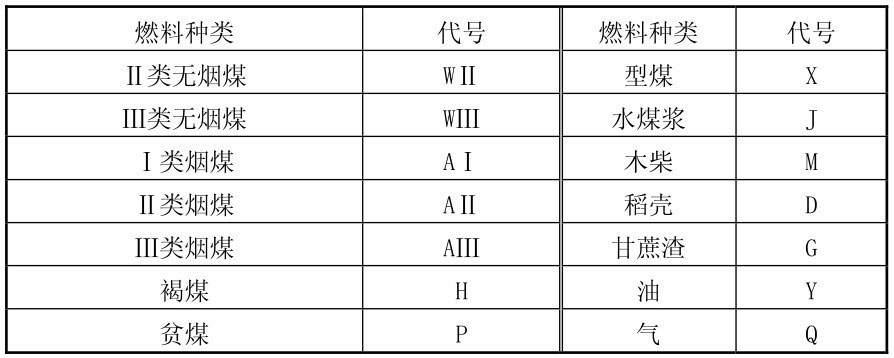 型号的第三部分表示燃料种类。用大写汉语拼音字母代表燃料品种,同时用罗马数字代表同一燃料品种的不同类别与其并列。如同时使用几种燃料,主要燃料放在前面,中间以顿号隔开。见表2-21。