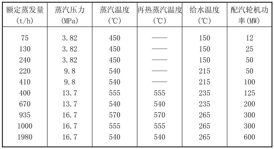 表2-22 我国中压以上电站锅炉系列