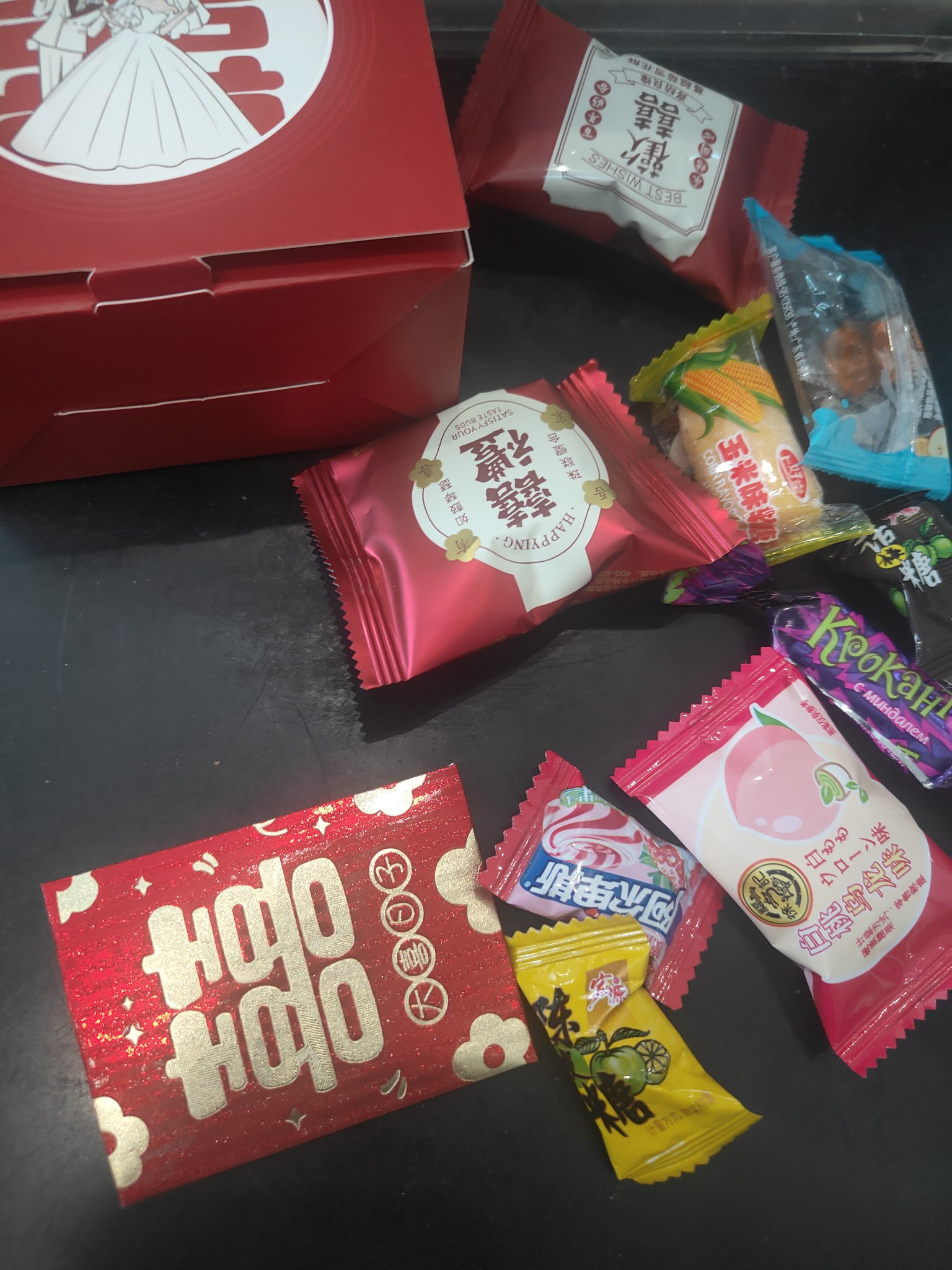 先是买了一把新的筷子,陶瓷的,来作为我节日的新开始然后就是一口气十连抽,抽出了一堆卡牌,充实我的卡牌库再然后就是如图所示,虽然我没有去参加别人的婚礼,但是还是领到了一份喜糖,那么我也祝愿一下新人百年好合
