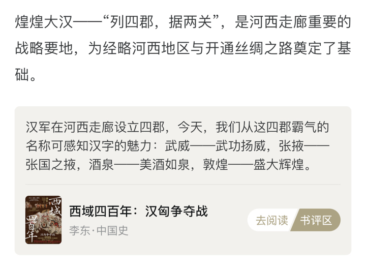 武威-张掖-酒泉-敦煌,连起来就是汉代经略、战略西北最简短且又生动的描述,也代表着冠军侯的赫赫战功。