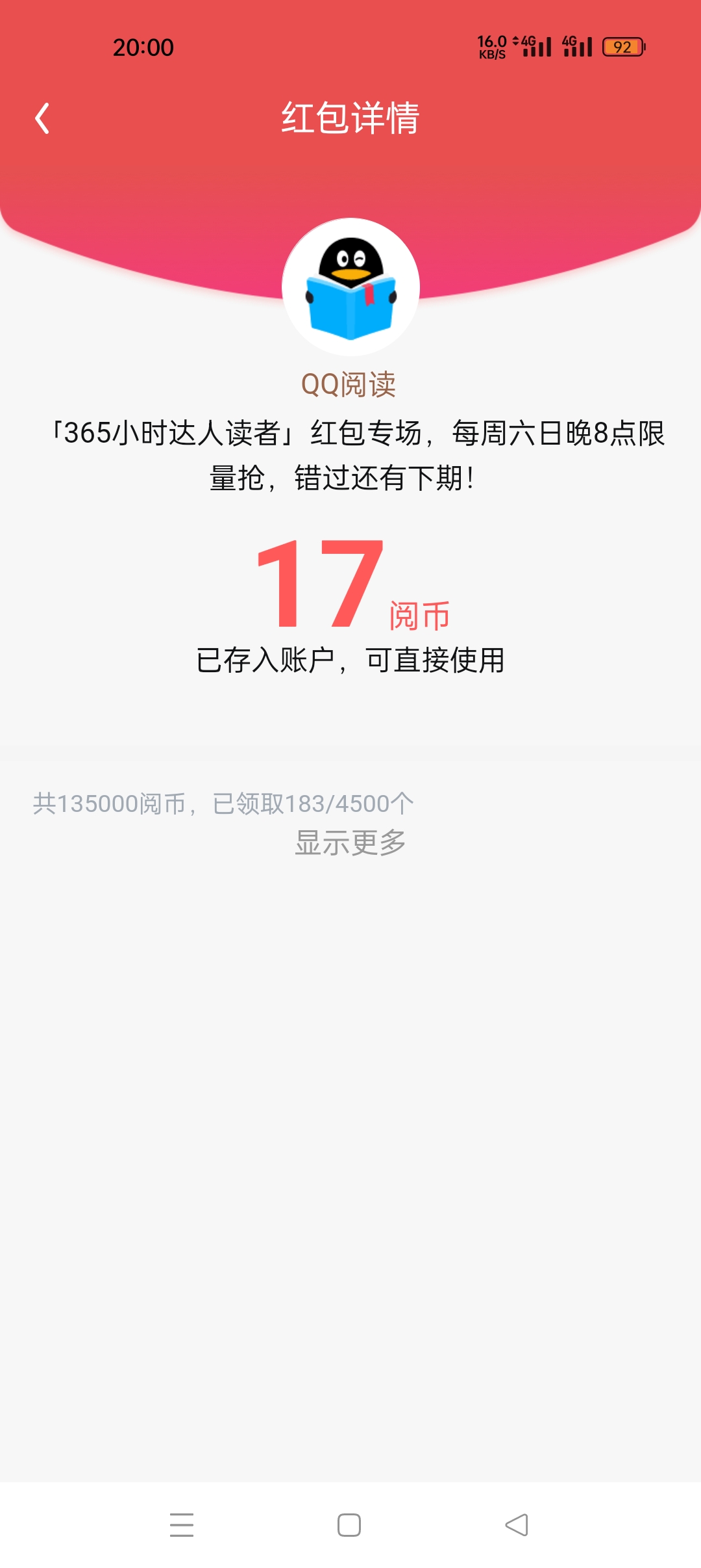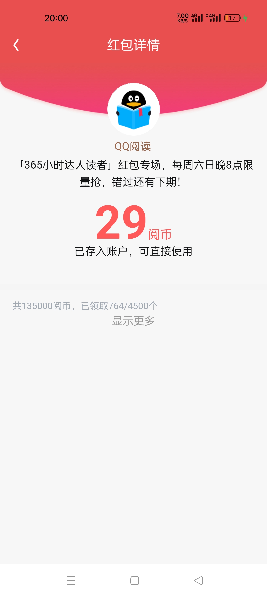 今天晚上才抢到17个红包,还没有昨天晚上抢的多