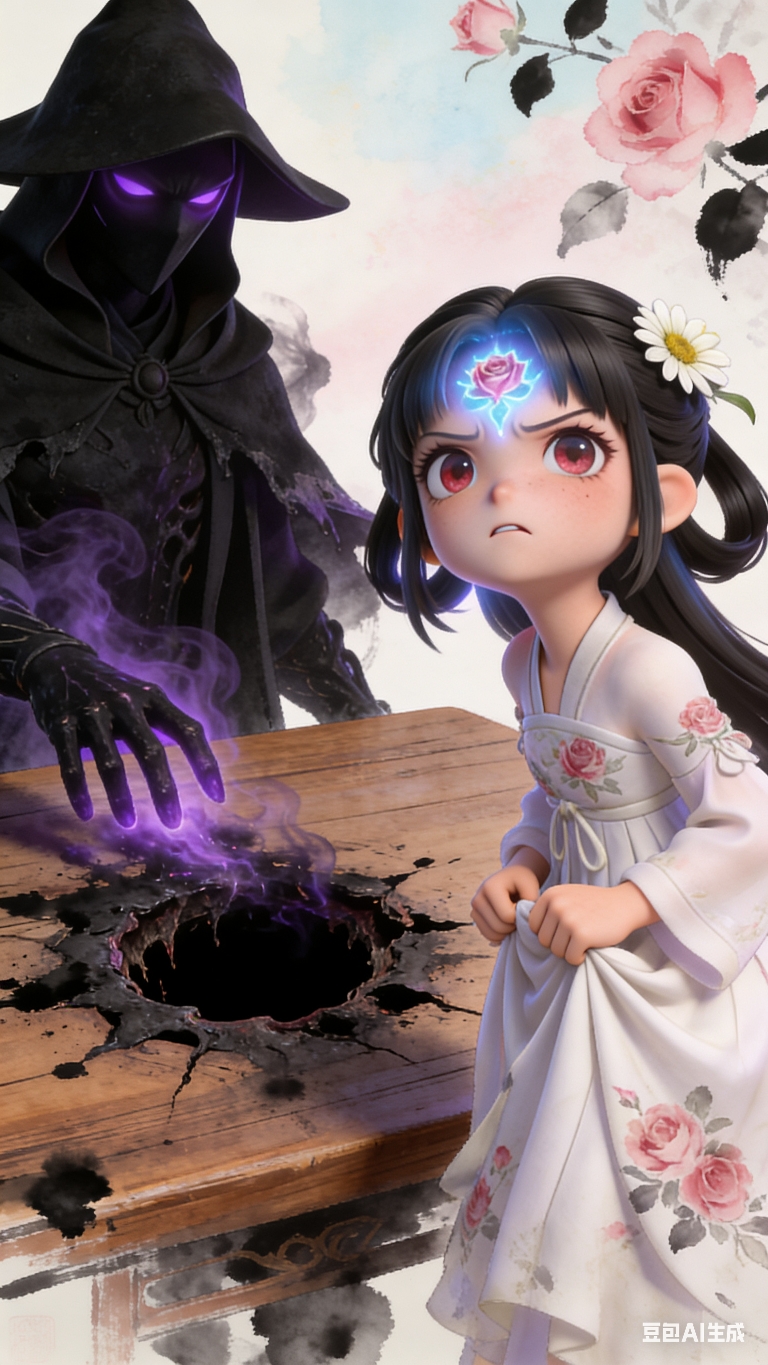 暗影法师抬手,指尖萦绕紫黑色雾气,雾气掠过木桌,桌面瞬间被腐蚀出黑洞,散发出刺鼻气味;蔷薇公主吓得发抖,却依旧昂头瞪视 暗影法师:老头,你守护这丫头十几年,也该累了。