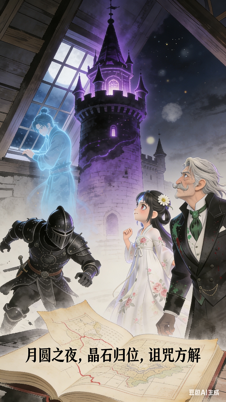 地图上的小字“月圆之夜,晶石归位,诅咒方解”,曹珏抬头望向窗外,城堡主塔亮起诡异紫黑色光芒。