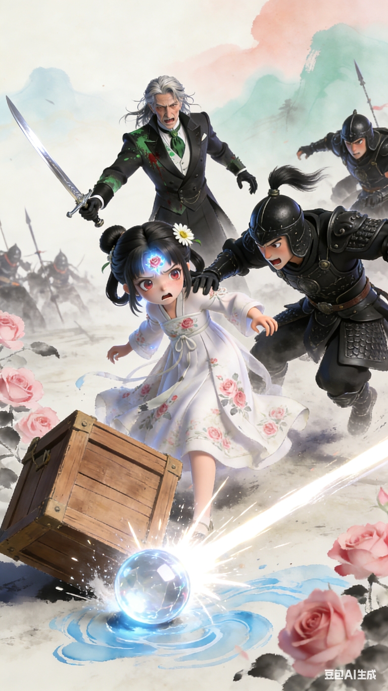 老管家突然厉喝,拔剑指向骑士,骑士们瞬间回神,扑向蔷薇公主;少女吓得脸色发白,后退时撞翻木箱,巴掌大的水晶球滚落,迸发出刺眼白光 ,